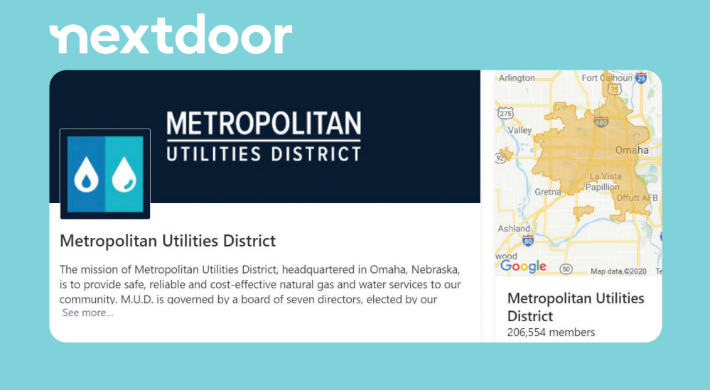Hello neighbor! M.U.D. joined Nextdoor as a public agency October 5. We plan to use the social media platform to reach more than 200,000 Nextdoor members in 707 neighborhoods across the metro Omaha area.